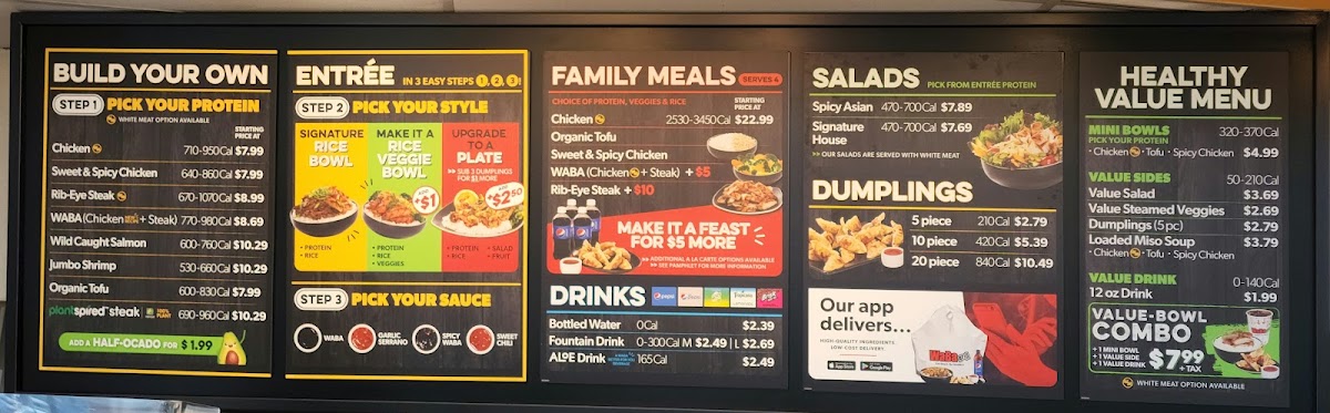 - WaBa Chicken & Steak Veggie Bowl - A perfect pairing of in-house marinated ribeye steak and grilled all-natural chicken, all complemented by the unique WaBa sauce.